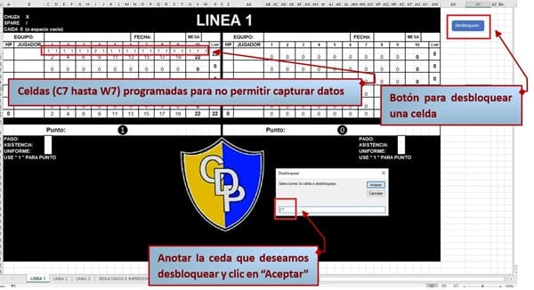 Tengo una hoja excel de resultados de una partida de boliche, ya funciona toda, pero deseo hacer que una vez que se llene una celda del tiro correspondiente, ya no se pueda modificar, y crear un botón especial para nuevamente desbloquearla y poder corregir en caso de algún error.