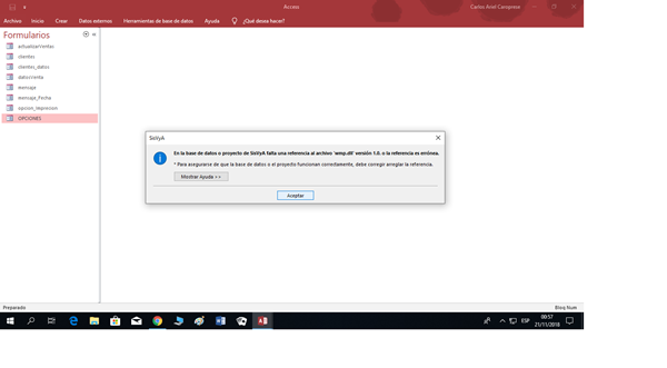 Me ha empezado a aparecer el siguiente mensaje cada vez que abro mi proyecto de access, no se que pueda ser. Mil gracias desde ya
