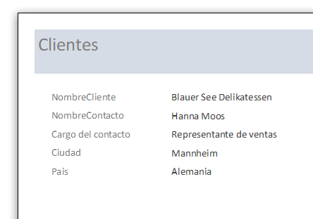 Reporte en access que permita al usuario visualizar los datos que introdujo previamente