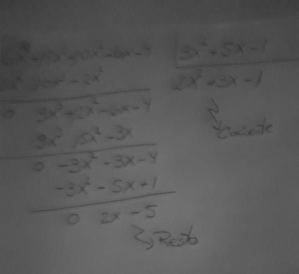a) Cociente: 2x^2+3x-1. Resto: 2x-5.