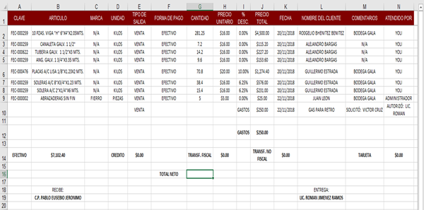 Haber si me pueden orientar. Como puedo sumar los valores de las celdas B, E, H, K y N que estarán siempre 6 filas antes de la ultima fila con datos, menos la celda J que esta 8 filas arriba de la ultima fila con datos y que el resultado lo ponga en la celda "G" 4 filas arriba de la ultima fila con datos. Pongo imagen para mayor referencia.