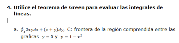 Utilice el teorema de Green para evaluar las integrales de líneas. ∮_c 2xydx+(x+y)dy, C: frontera de la región comprendida
