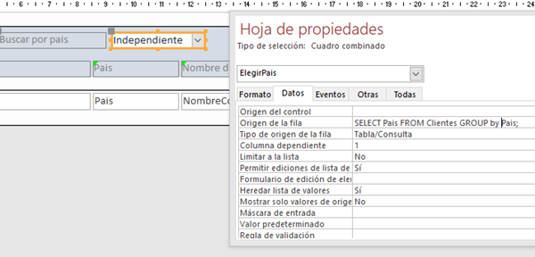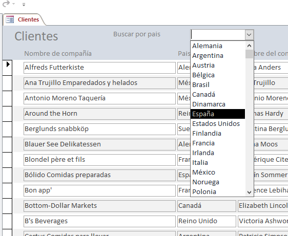 Tengo una tabla y quiero mediante cláusula WHERE obtener el recordset que cumpla la condición pero, eso sí, el parámetro para filtrar quiero introducirlo eligiendo desde un campo combinado. Concretando, tenemos: