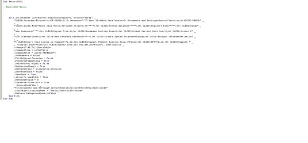 Amigos necesito de su ayuda, gravé una macro para importar datos de access de un archivo llamado "CONSOLIDADO", pero solo me importa una tabla, necesito hacer una rutina para que una vez importada una tabla siga con la siguiente ej: que haga la importación en la hoja 1 rango a:1, de la tabla BDMARZO, terminada la importación siga con la siguiente que en este caso es BDABRIL, y así con todas las que están en el archivo "CONSOLIDADO". Epero me puedan ayudar.