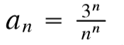 $$\begin{align}&\text{Veamos si es monotona decreciente, esto es si }a_n > a_{n+1}\\&a_n >^? a_{n+1} \to\\&\frac{3^n}{n^n} >^? \frac{3^{n+1}}{(n+1)^{n+1}} = \frac{3^n \cdot 3}{(n+1)^{n+1}}\\&\frac{1}{n^n} >^? \frac{ 3}{(n+1)^{n+1}}\\&\frac{(n+1)^{n+1}}{n^n} >^? 3\\&\frac{(n+1)^n \cdot (n+1)}{n^n} >^? 3\\&(n+1) \bigg(\frac{n+1}{n}\bigg)^n >^? 3\\&\text{Y esta última desigualdad es claramente válida (si no me crees prueba darle algunos valores a n y verás que es así)}\\&\text{Conclusión, tenemos una sucesión con todos los términos positivos y estrictamente decreciente, por lo que}\\&\text{claramente el límite debe ser 0}\end{align}$$ Salu2
