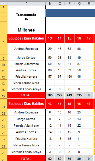 La formula que ocupo es principalmente que me calcule datos si es que cumple con la restricción o no (la restricción es que me calcule el dato si la fecha es igual o menor en la que estamos que la tengo ingresada a lo largo de la fila 5 , desde la columna B a la X. Por ejemplo me calcula todas las columnas desde el 1 de diciembre al 12 de diciembre y las que tengan ingresado desde el 13 de diciembre a fin de mes no las calcula. Si me puede ayudar a hacer un select desde la columna hasta la fecha ocupando la funcion hoy seria de mucha ayuda, quedo atento a tus comentarios.