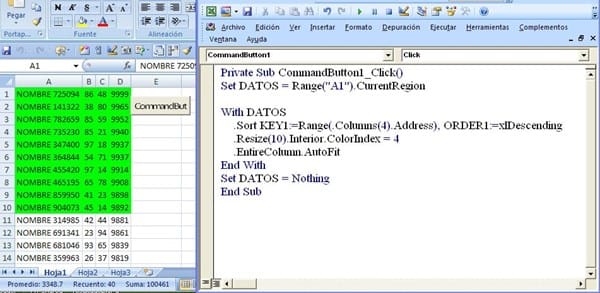 (DEL EJEMPLO)Resulta que quiero que al darle un botón me muestre una lista con el valor de la primera columna (nombre) de las 3 filas que tengan los mayores números en la columna D.