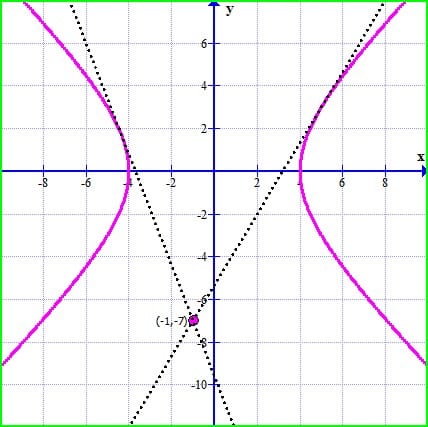 Hallar las ecuaciones de las tangentes a la hipérbola x^2 -y^2 = 16, trazadas desde el punto P(-1, -7) :