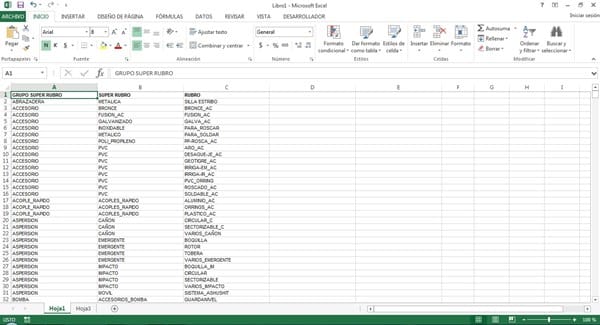 Por ejemplo: el rubro "SILLA_ESTRIBO" está dentro del Super Rubro: "METALICA" el cual está dentro del Grupo Super Rubro: "ABRAZADERA".
