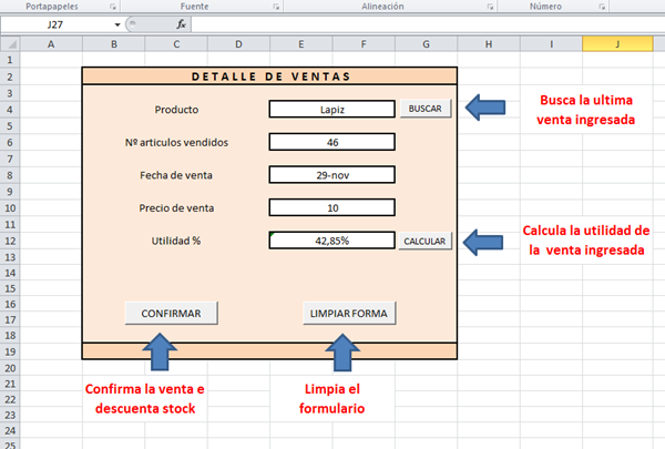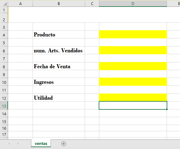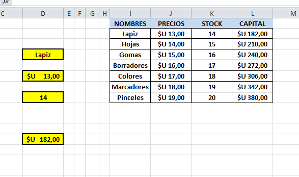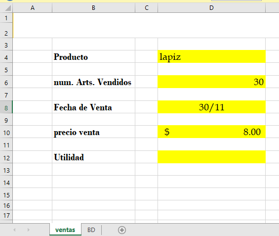 Por ejemplo, ingreso Lápiz, en la hoja Ventas D4