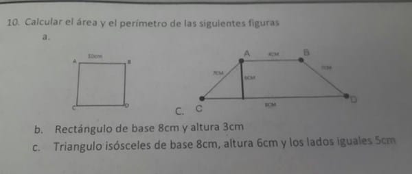 Con esas aprendes a resolver cualquier otea figura regular o hasta irregular que se te presente. Por eso consulta las fórmulas de estas figuras y aprendelas de memoria.