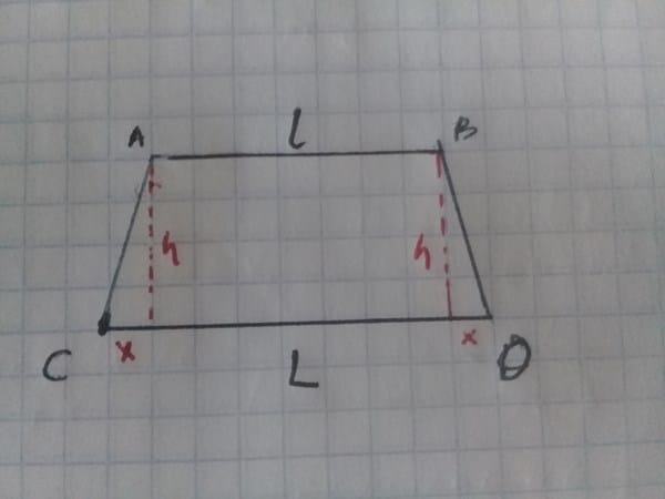 Como en la foto no se notan los valores, vamos a llamar "l" al lado superior más corto, "L" al lado inferior o base más largo.