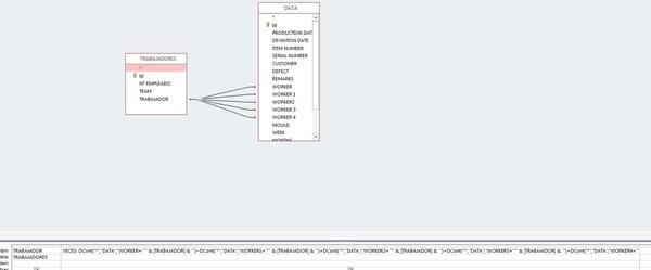 Ana: Ignoro si habrá algo máspero en principio la relación "Todos los de la Tabla TRABAJADORES Y ..." no la tienes establecida. Se hace de la siguiente manera>> Pulsa sobre cada línea de relación con el botón derecho del ratón y te mostrará dos opciones >>