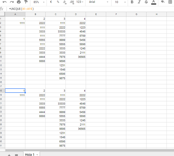 Eliminar repetidos en cada columna que conforma la hoja excel