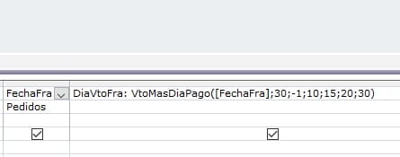 Cuando utilizo la consulta actual que necesito con lo que me has enviado DiaVtoFra: (VtoMadDiaPago ([fechaFra];30-1;5;10;20) Siendo 5;10;20 los días de pago que yo utilizo.