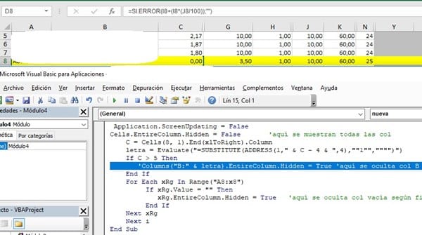 Esconder celdas que tengan en la celda no tengan valor