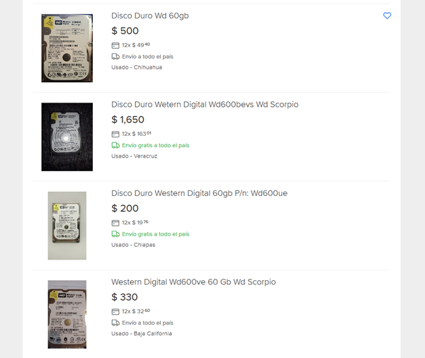 Quisiera que me lograran ayudar diciendome el precio de un disco duro marca Western Digital WD600BEVS.