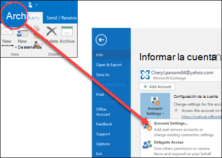 Nota: para Outlook 2007, seleccione Herramientas > Configuración de la cuenta y vaya al paso 3.