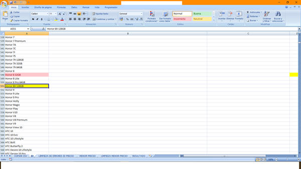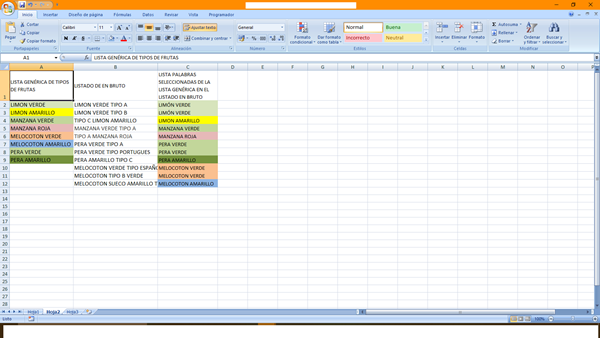 Lo he intentado mediante funciones SI de hasta 64 anidaciones, porque en realidad son muchas palabras las que tengo que discriminar del Listado en Bruto. Pero probablemente exista una forma más sencilla.