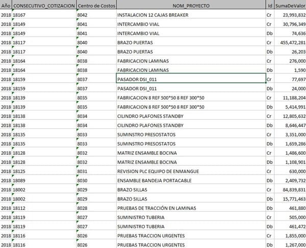 Tengo una consulta cruzada donde me aparece la información de gastos por centros de costos en fila y en columnas si es Crédito o Débito los valores, debo convertir esta en una Tabla para seguir trabajando algunos parámetros, ya que con consulta Cruzada no lo he logrado