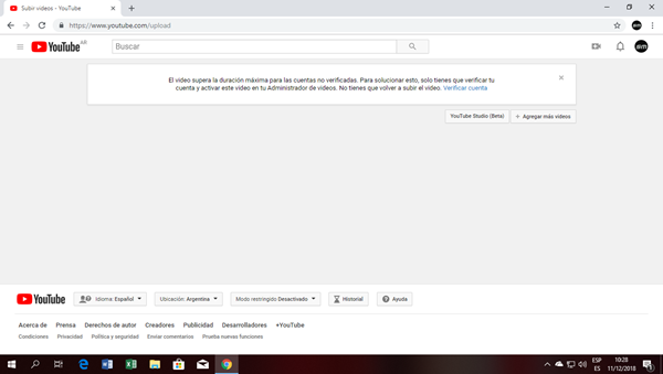 No puedo subir un video a Youtube porque supera la duración máxima para cuentas no verificadas