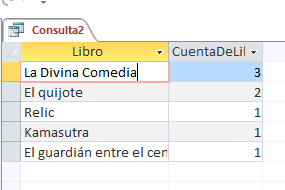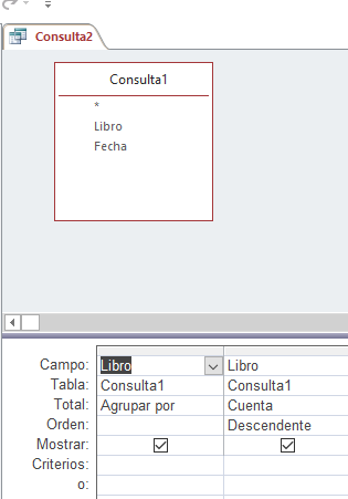 Vicente: Si interpreto bien tu pregunta, solo tienes que agrupar por libro, como dices que lo estás haciendo y en un Campo de la consulta que se puede llamar Veces en lugar de agrupar puedes poner >>