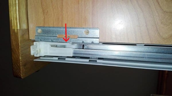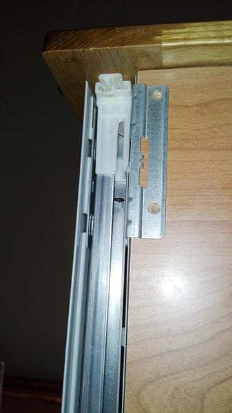 He mirado tutoriales en internet, pero en uno de ikea dice que hay que levantar una pestaña que tiene tras el frontal, pero tampoco puedo acceder al frontal, el rail está cubierto por una carcasa metálica, y tampoco puedo quitarla.