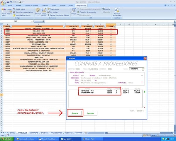 LIstado de compras y Actualizar stock en un command_button (vba excel)