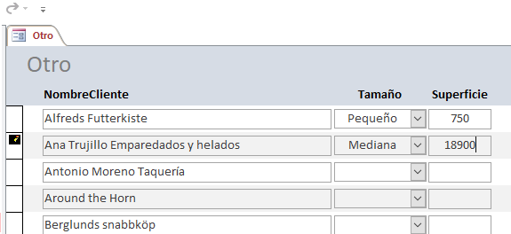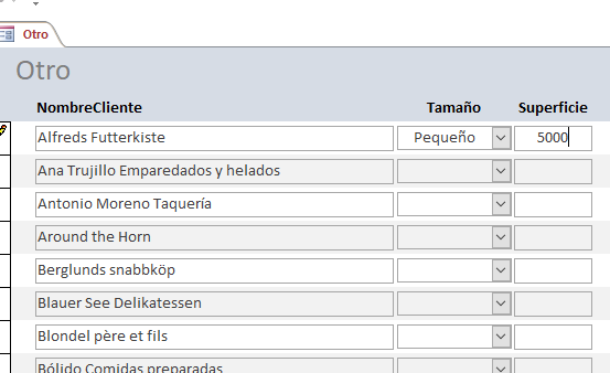 En tamaño elijo el que quiera y si en Superficie escribo la cantidad que ves cuando pulso Enter o intento irme a otro registro