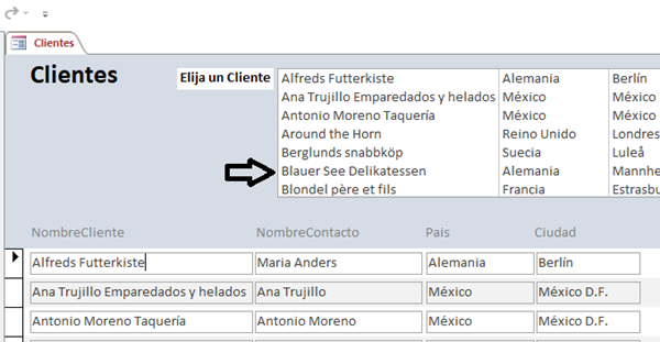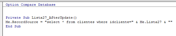 El listbox cuenta con rowsource de la tabla OPERADOR