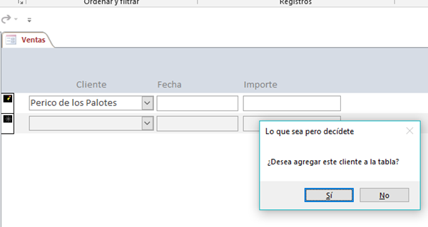 Bueno siempre me toca escribir el nombre en el cuadro combinado y como no esta abre el formulario de clientes y debo volver ha escribirlo.