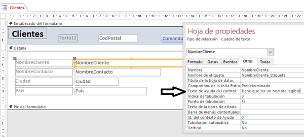 Crear un texto dentro de un campo de un formulario en Access 2003