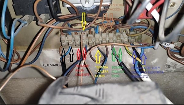 Entonces, del interruptor de la calefacción quito una de las clemas (la que sea de las 2) y pruebo a ver si va el agua caliente