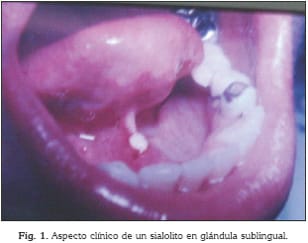 y la formación de un 'sialolito' en una glándula sublingual obstruida,
