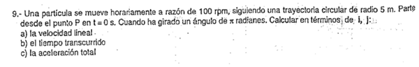 La velocidad angular es = (100 x 2pi / 60) = 10.467/ s.( Constante).