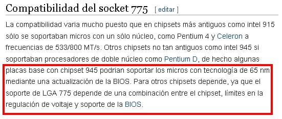 Sobre renovar o actualizar el procesador, se nos abren tambien varias dudas, porque el zócalo de la placa base es o parece ser el llamado 'Socket T' (más conocido como LGA 775),