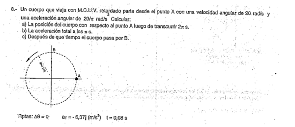 En el siguiente problema de física de Movimiento Circular Uniformemente Variado necesito el proceso para encontrar los siguientes respuestas