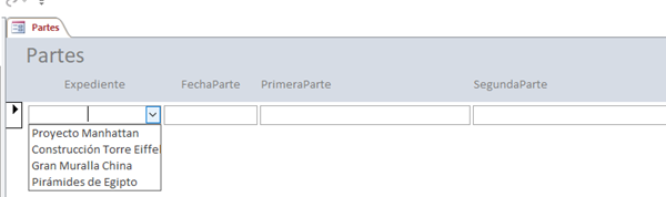 Estoy creando un formulario de Access para introducir partes de trabajo. Necesito que dichos partes estén vinculados a un expediente en particular. Por ello se debe rellenar el número de expediente en el formulario. Debido a que podría haber cientos, ¿existe alguna forma de crear un buscador por descripción de expediente?