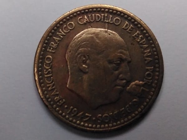 Hace tiempo que tengo esta moneda 1 peseta 1947 . Por detrás también hay algunos excesos de metal en el mismo sitio que por la otra cara, tiene 2 estrellas de 6 puntas la primera apenas se ve el 19 y en la segunda estrella no hay nada . Me gustaría saber si tiene algún valor, Le mando la foto gracias y un saludo .