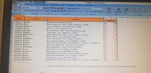 Pero que sucede cuando la columna A no está filtrada la macro se posiciona correctamente en la celda 2238 porque es la primera celda vacía.