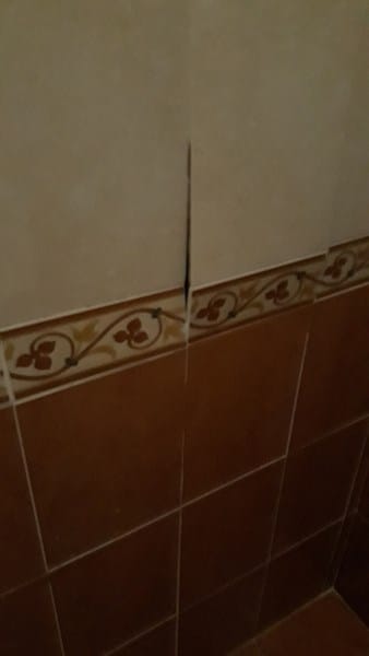 Compramos una casa el año pasado y en los baños hay algunos azulejos que sobresalen como veis en estas fotos. ¿Me podéis explicar por que eso pasa y como resolverlo?