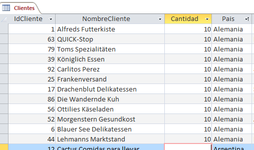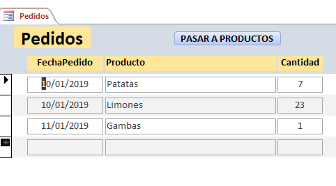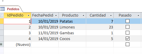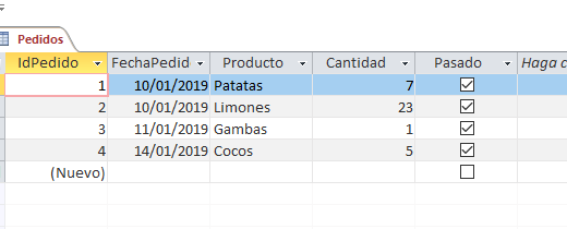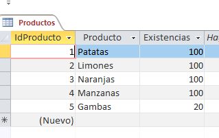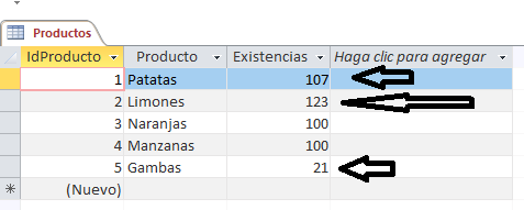 En la tabla LISTADO ALMACEN tengo varios campos: