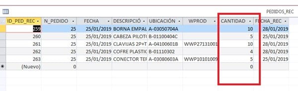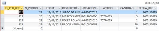Tengo dos tablas LISTADO ALMACEN y PEDIDOS_REC