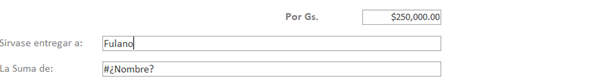 Solo necesito que en la casilla de importe de "Por Gs." se repita en la casilla de "La suma de " pero en letras de forma automática.