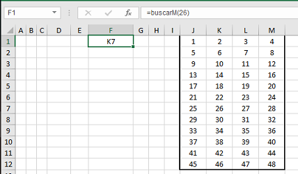 Teniendo una tabla con valores en varias filas y columnas, quiero conocer la coordenada dentro de la tabla de un valor dado.