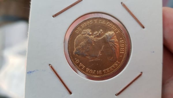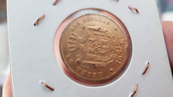 Cual es el valor de una moneda de 1868 de isabel ll, en el reverso pone 10