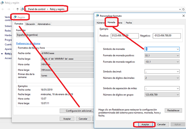 Uso Excel 2016 y cuando trato de ingresar el formato contabilidad desde la barra de herramientas me aparece el formato XRD y yo quiero otro tipo de moneda.
