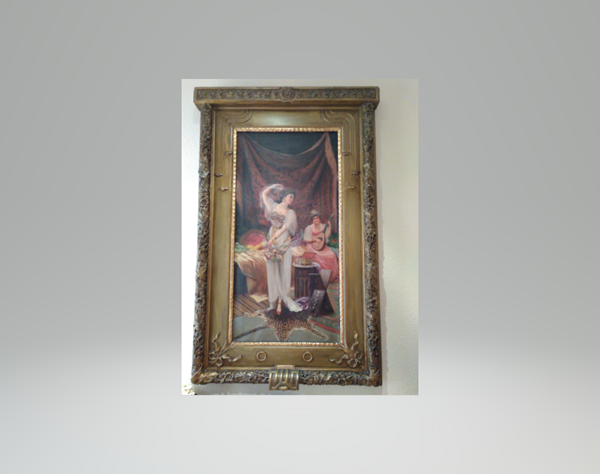 Se trata de oleo sobre lienzo de 99 x 49 con un marco labrado de 135 x 85