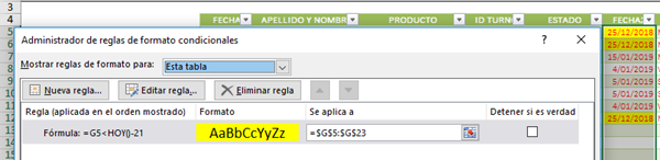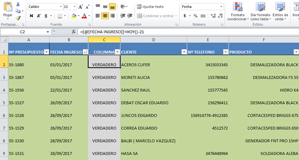 Quiero que me avise cuando pasan 20 días de unas fechas determinadas. En la columna "fecha de ingreso" (columna 2) quiero que me avise cuando pasan 20 días luego de dichas fechas. Que me avise diciéndome en una celda el numero de fila de dicha fecha cuando pasaron 20 días para poder verlo mas rápidamente.