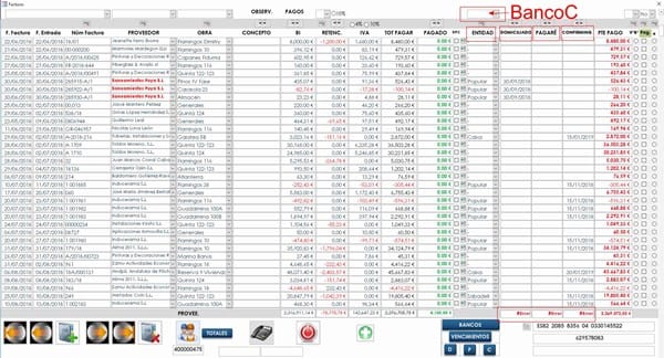 Tengo una base de datos de facturas donde tengo un formulario llamado facturas que esta basado en una tabla también llamada facturas y necesito hacer la suma en un campo de texto del campo "PtePago" que coincida con dos criterios, uno dependiendo de la entidad que seleccione en un cuadro de lista desplegable que se llama "BancoC" y el segundo criterio debe ser todos aquellos registros que en el campo "Domiciliado" contenga una fecha que sea ">=Fecha()", esta misma operación debo repetirla para la suma de los campos "Pagare" y "Confirming" independientemente, para aclarar un poco lo explicado adjunto una foto del formulario